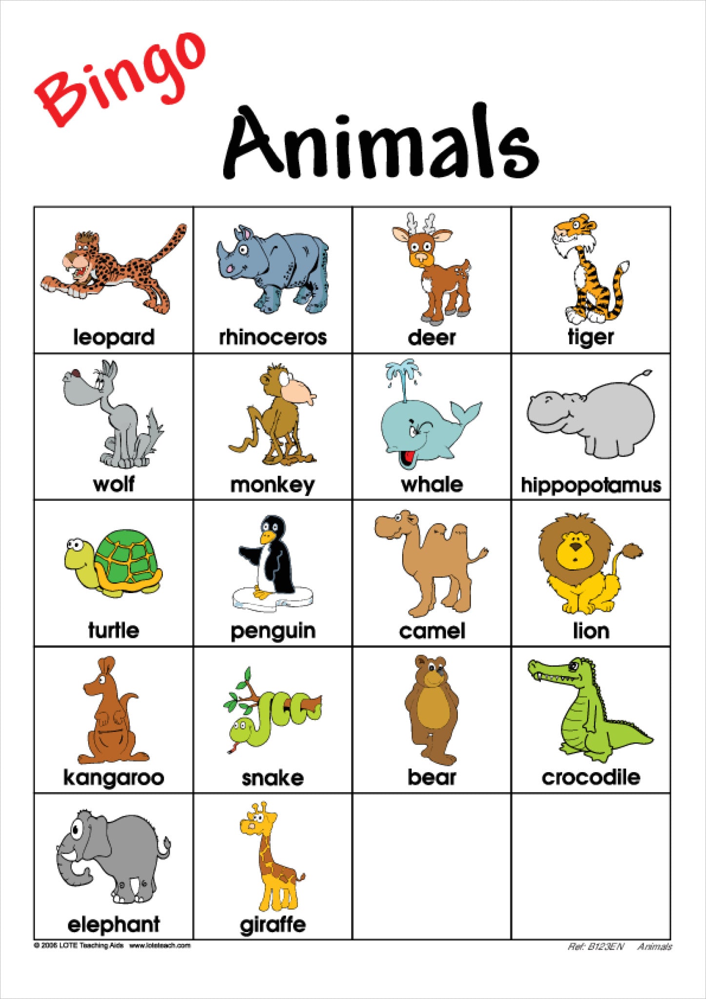 - 1 full-colour caller card featuring all animal vocabulary