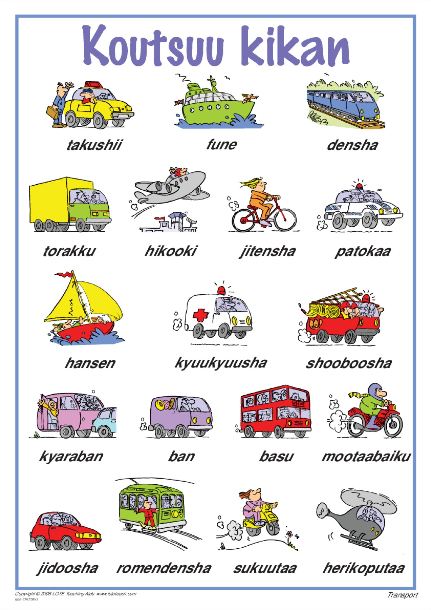 This chart pairs with Transport Theme Cards, Word Cards and games, allowing students to move from visual reference to structured practice and active language use.
